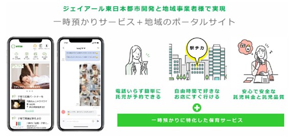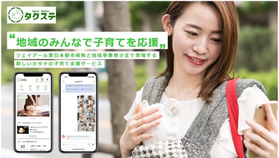 タクステは、JR東日本の鉄道高架下を管理・運営するジェイアール東日本都市開発が、駅ナカ・駅チカに「一時託児所」を設置することで、子育てユーザーが簡単・気軽な一時託児の利用が実現し、お子さまを預けた後に、駅周辺で自分時間を過ごすことで子育てユーザーと地域の店舗事業者を繋ぐプラットフォームサービスです。