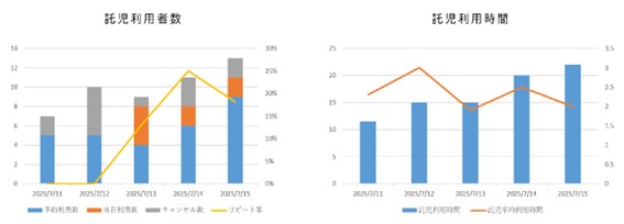 開催告知期間2週間で、多くの方に事前のご予約と当日のご利用をいただくことができました。また、初日や二日目にご利用いただいた方からも後半日程で再度ご予約・ご利用いただけるリピートもあり、親御様はもちろんお子さまの満足度も得られた結果であると感じております。