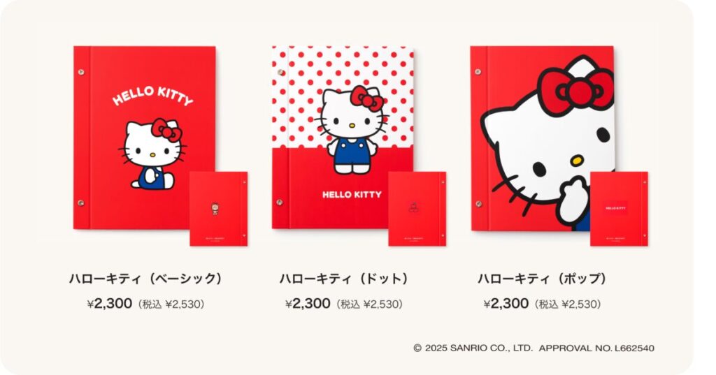 「写真アルバム」のデザインは、シンプルで定番の「ハローキティ(ベーシック)」、水玉模様が可愛らしい「ハローキティ(ドット)」、そしてポップな印象の「ハローキティ(ポップ)」の3種類からお選びいただけます。「みてね」の写真プリント専用アルバムは、「ハローキティ」デザインに加え、全12色の「無地アルバム」や、天然素材をベースにやさしい色合いに染めた布張りの「ぬのアルバム」といった既存の豊富なラインナップもご用意しており、お客様はより多彩な選択肢からお好みの「写真アルバム」を自由に選べるようになりました。