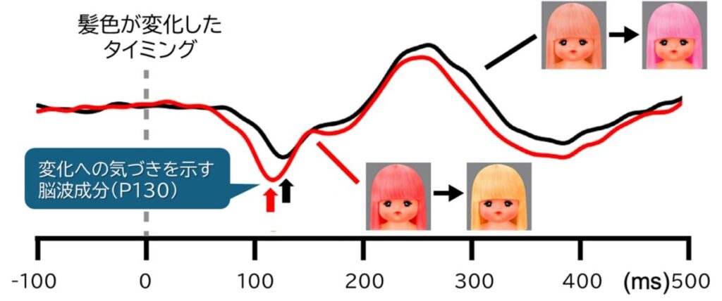 掲載論文名:Visual change-related brain potentials elicited by changes in doll hair color in school-aged children (学齢期の子供におけるお人形の髪色変化により誘発される視覚の変化関連脳電位)