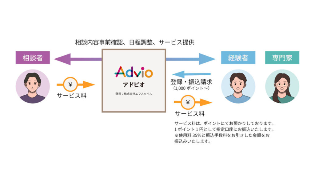 Advioは、身近な人には話しにくいテーマや、実体験に基づく知見が必要な相談を抱える方を想定しています。